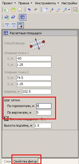 вопрос - как изменить шаг сетки расчетной площадки? зашла в настройки - шаг линий идентифицирующих стороны прямоугольника, но это не то. поскольку в отчете выдает свой шаг.