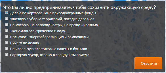 Можно выбрать тот вариант, который считаешь наиболее значимым в своей... природоохранной деятельности. :)Кстати, я там повис над опросом. Трудность в том, что можно выбрать только один вариант: