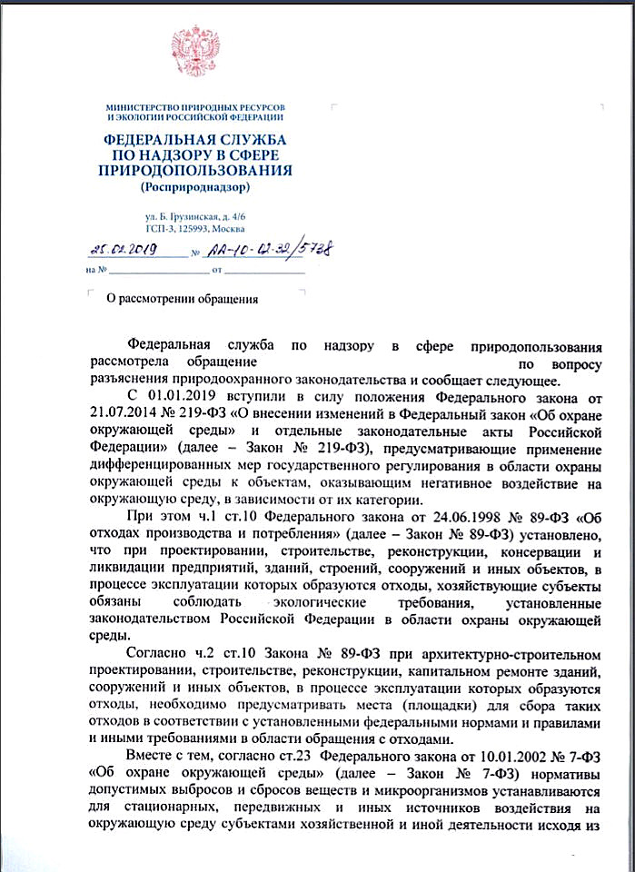 Re: Письмо Росприроднадзора № АА-10-02-32/5738 от 25.02.2019 [Стройка]