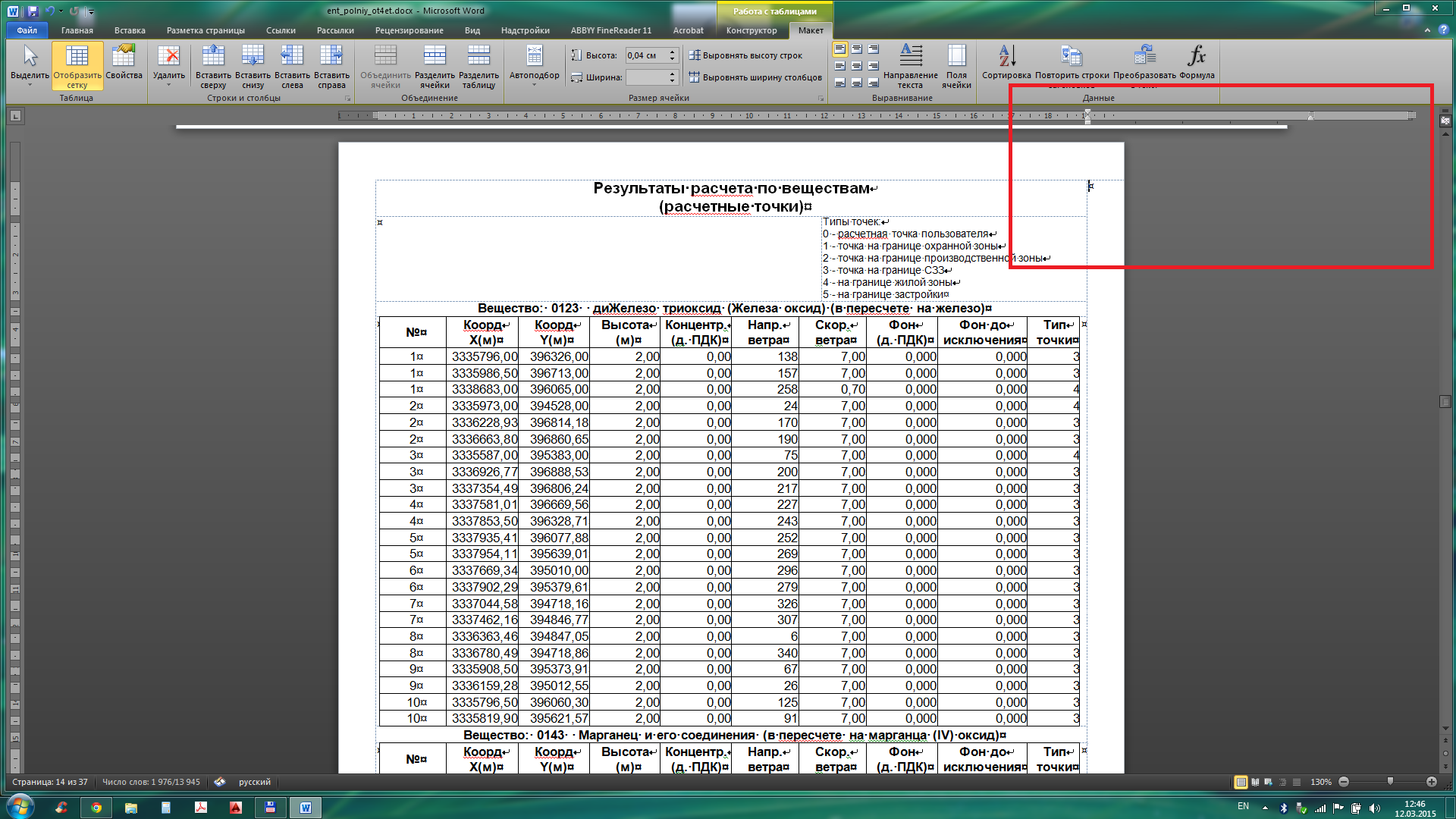 Можно было бы попробовать сформировать все таблицы в портретной ориентации и тогда при экспорте отчета отказаться от разрывов, но основная проблема это таблица "Параметры источников выбросов".