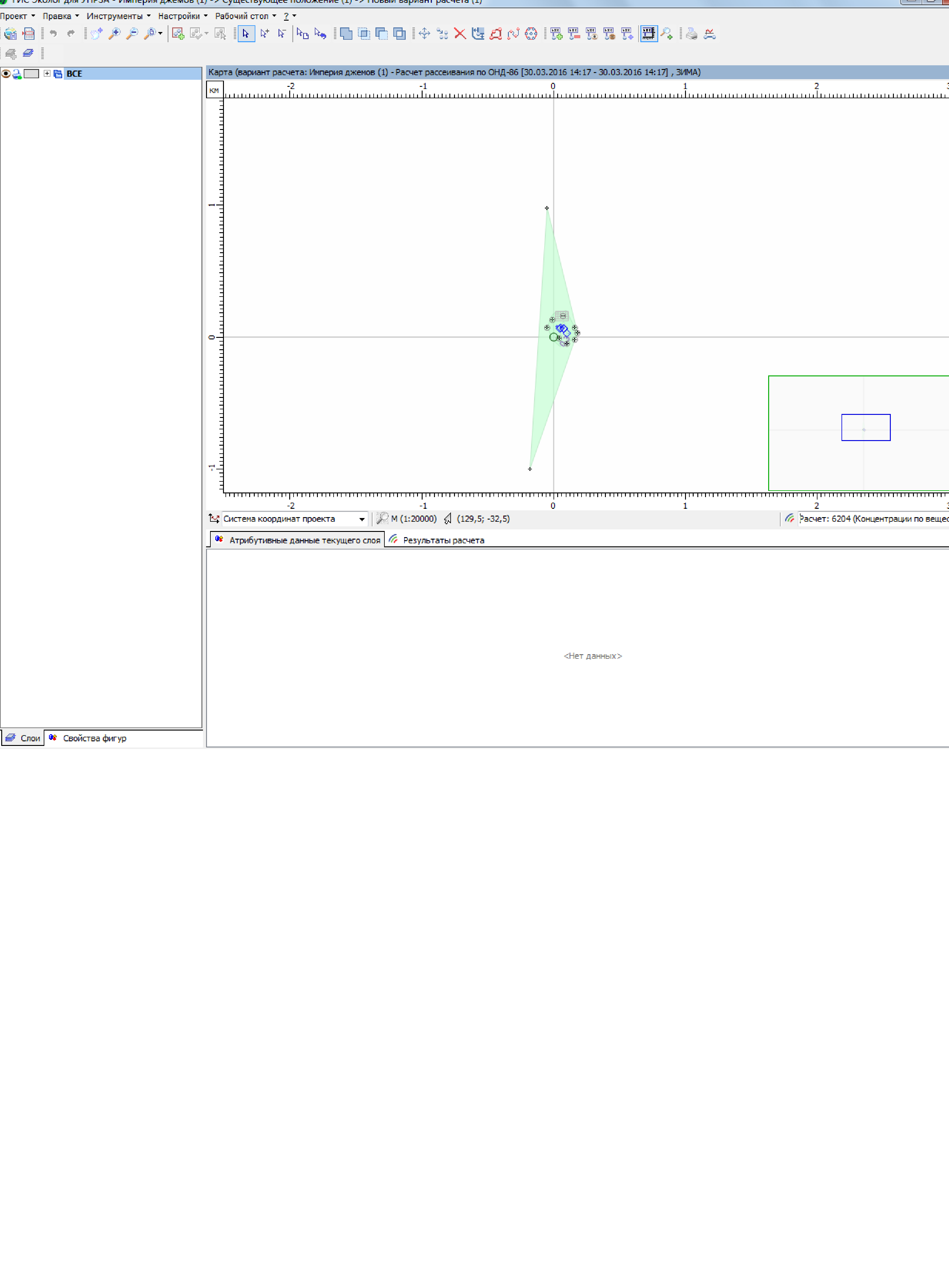 2. Или расчетная площадка очень маленькая, а расчетные точки на большом расстоянии от территории (около 1 км, судя по рис.). Если расчетные точки и должны быть так далеко, то и площадку сделайте побольше, где-нибудь 1500м * 1500 м.