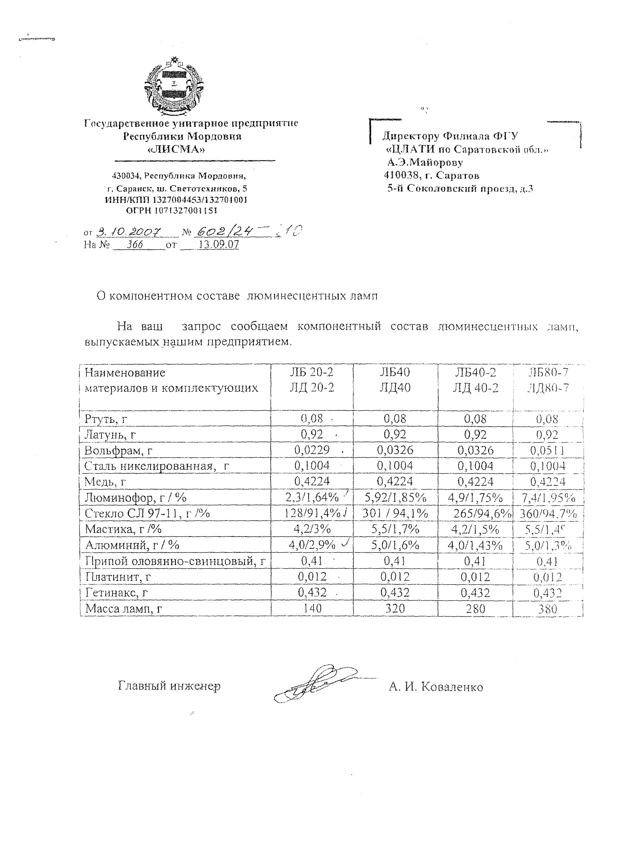 Вот кстати по поводу составов - там есть ссылка на ГОСТЫ, но в ГОСТАХ нет состава ртутных ламп? Вопрос - откуда тогда состав ламп, приведенный с ссылкой на ГОСТ?