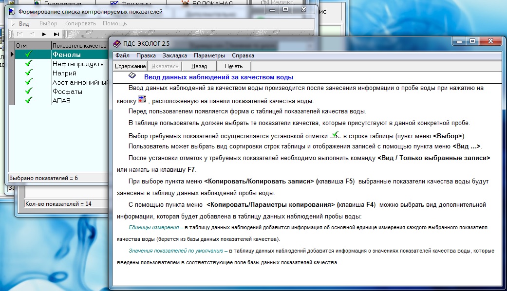 В предыдущем сообщении виден скриншот на котором есть закладки "Сточные воды" и "Фон.конц". В этих закладках есть кнопки добавления показателей.
