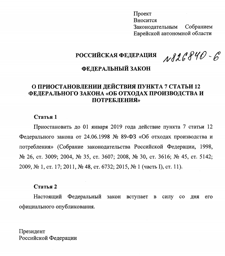 Федеральным законом от 29.12.2014 №458 "О внесении изменений в Федеральный закон "Об отходах производства и потребления", отдельные законодательные акты Российской Федерации и признании утратившими силу отдельных законодательных актов (положений законодательных актов) Российской Федерации" вносятся корреспондирующие изменения в: