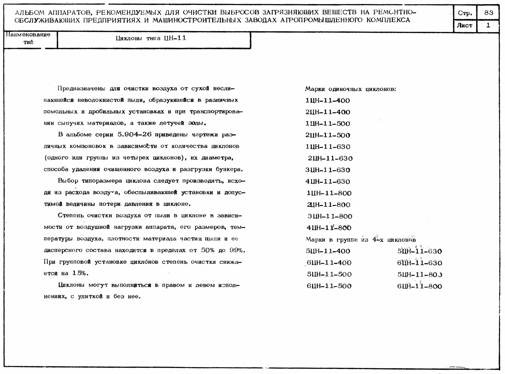 Справочник называется: "Газоочистные аппараты сухого и мокрого типов. Каталог.-М.:НИИОГАЗ,1984".