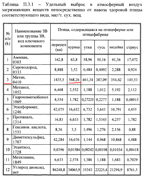 Не могу рассчитать выбросы от пометохранилища!