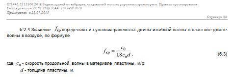 Добрый день. Кто-нибудь делал расчёты структурного шума по СП 441.1325800.2019 ? Там есть формула для расчёта критической частоты