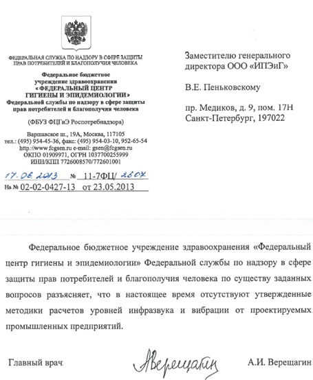 У кого-нибудь есть официальное письмо об отсутствии методик расчета инфразвука и вибрации?