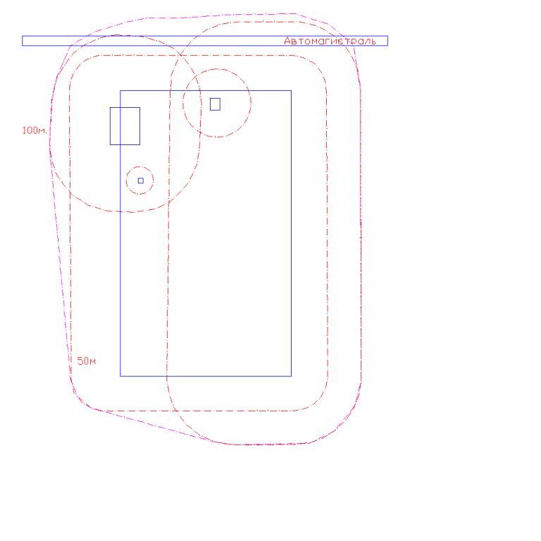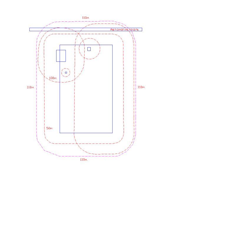 Т.е получается, что со всех сторон от границы земельного участка предприятия откладывается 100м+автомагистраль.