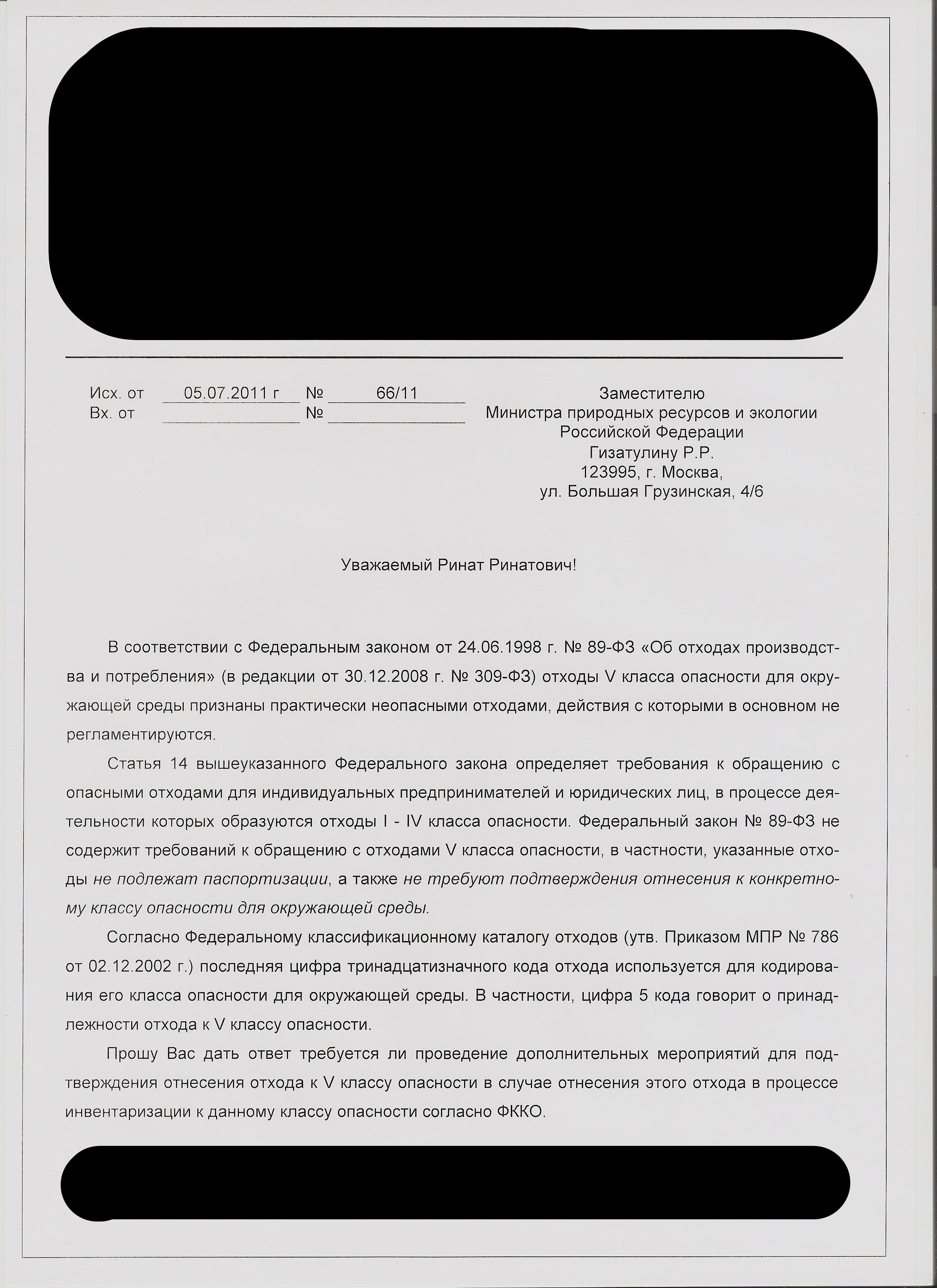Re: Отходы 5-го класса опасности и ПНООЛР