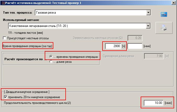 А в программе все впорядке: или берете 2000 ч/год и не ставите галочку на "осреднение", или же берете время менее 1000 ч/год, ставите галочку и указываете чистое время непрерывной резки (в данном случае 10 мин). И все!!!