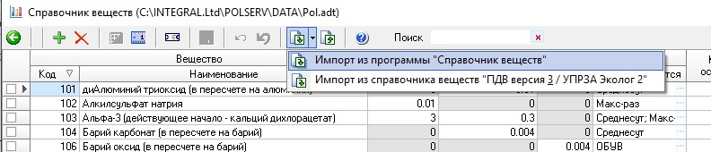 Анютка, если вы хотите наполнить справочник программы "ПДВ-Эколог" или УПРЗА "Эколог" данными из программы "Справочник веществ", то следует пользоваться импортом данных в этих программах.