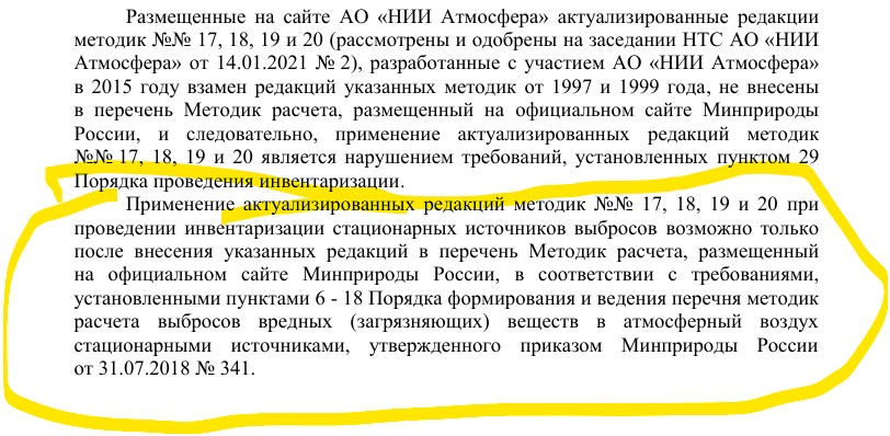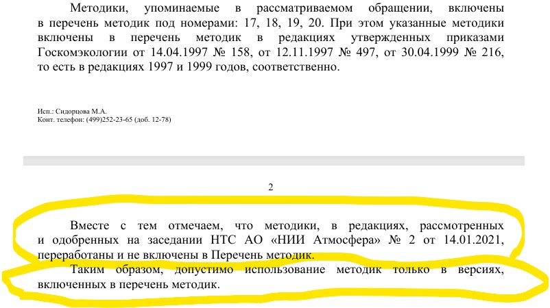 И вот у меня вопрос: почему, вы игнорируя распоряжение Минприроды России от 26.12.2022 № 38-р, настаиваете на использовании уже неактуальной и устаревшей редакции методики?
