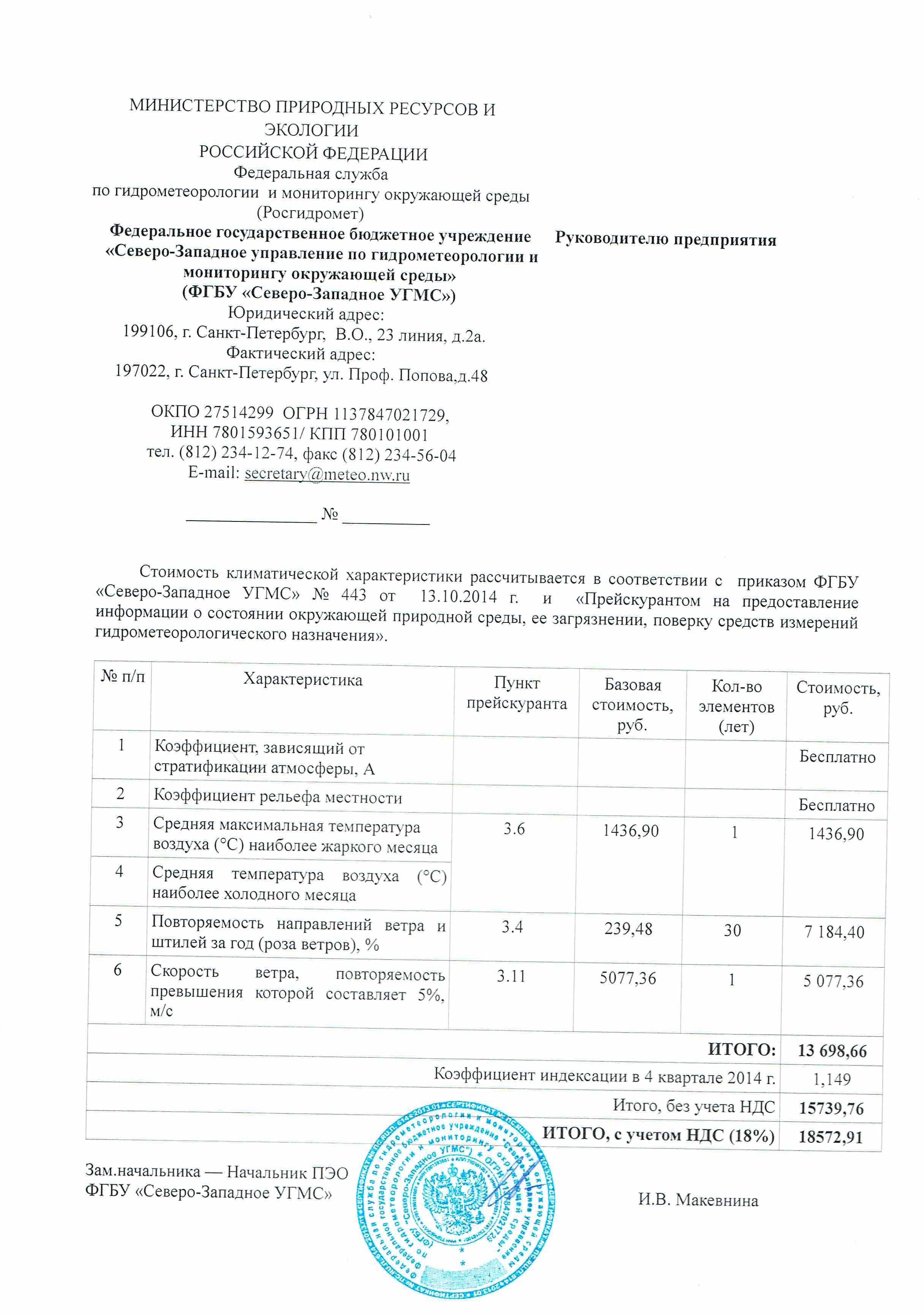 Дальневосточная писал(а):у УГМС должен быть прайс на услуги (утвержденный). Попробуйте запросить у них для заключения договора