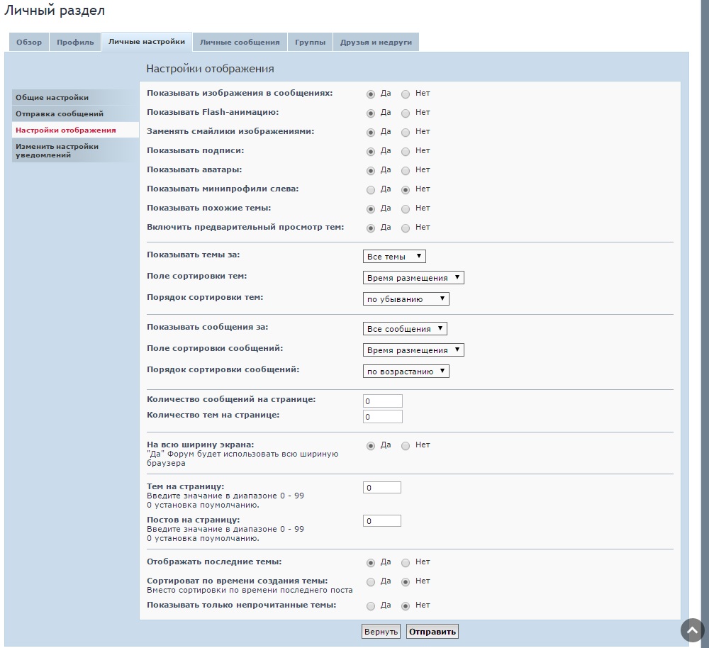 Появилось немало дополнительный настроек отображения форума.