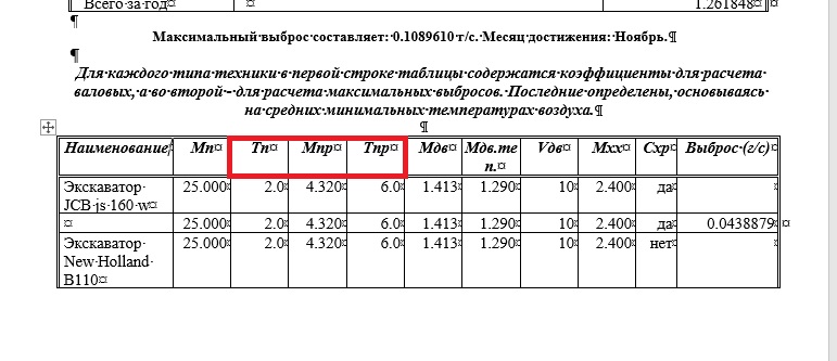 Так как в этой версии расчет ведется не только для самой стоянки, но и для каждой отельной единицы техники, то в отчете эта информация присутствует. Обратите внимание, что если вы передаете данные в программу "Инвентаризация" или "ПДВ-Эколог", то каждая единица техники будет отдельным источником выделения (ИВ), которую в дальнейшем в этих программах можно превратить в ИЗАВ одной кнопкой.