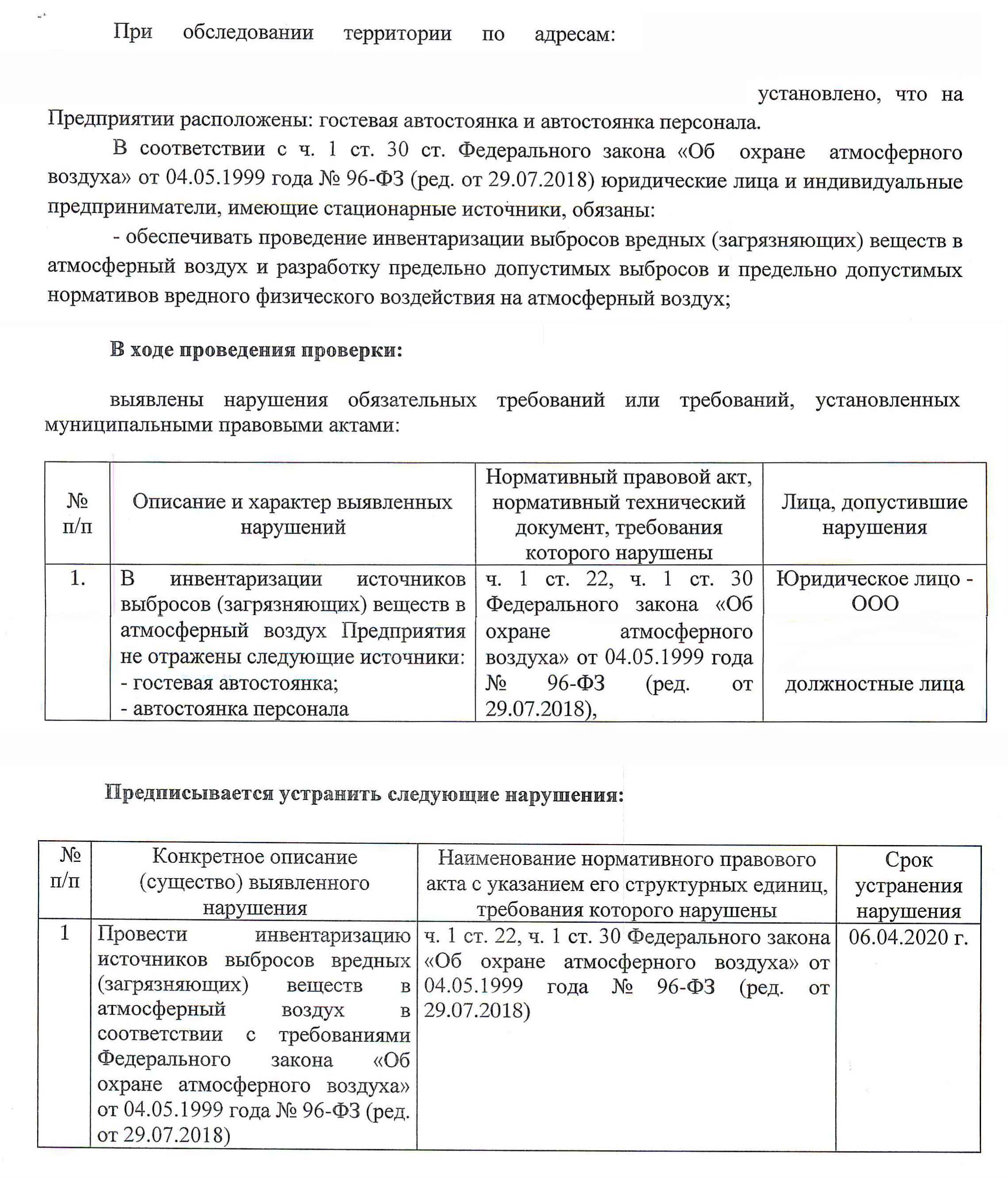 Проверка была до опубликования ФЗ №195-ФЗ от 26.07.2019, вносящего изменения в ст.22 ФЗ №96-ФЗ и уж тем более раньше вступления его в силу с 01.11.2019г. Надеюсь Вы знаете, что закон не имеет обратной силы?Лёха писал(а): 19 май 2020, 20:37 Федеральный закон от 04.05.1999 N 96-ФЗ (ред. от 26.07.2019) "Об охране атмосферного воздуха"