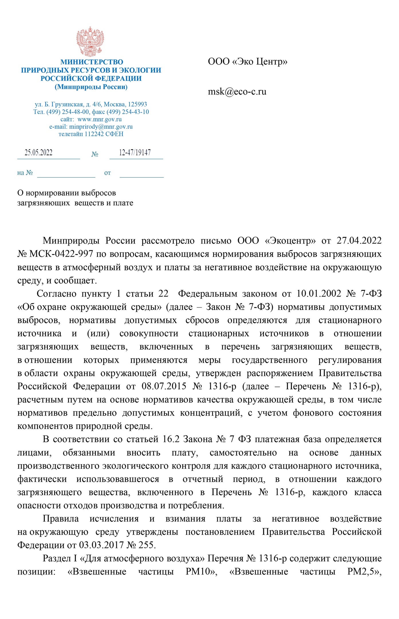 Добрый день. Не знаю в какой раздел разместить, тут выложу письмо. Сейчас вместо письма №АС-03-01-31/502 от 16.01.2017 г. нужно руководствоваться при нормировании письмом МПР №14-47/12147 от 25.05.2022 г.