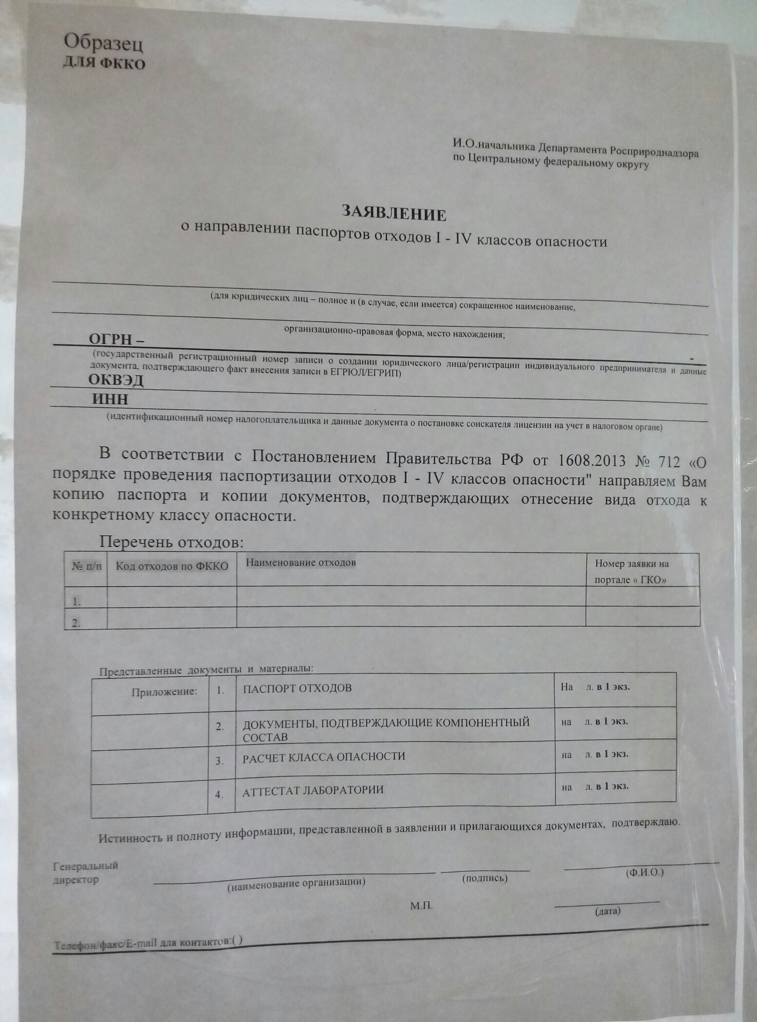 Коллеги! кто-то сдавал паспорта отходов, включ. в ФККО, в РПН по ЦФО? сегодня была там, увидела на стене замечательную памятку , которая гласит, что для паспортов отходов ФККО необходимо сдать: помимо заявления, копии паспорта, КХА, аттестата лаборатории, протокол РКО!?