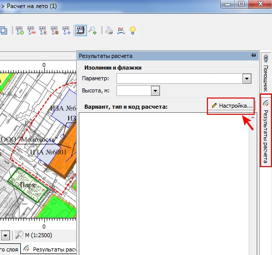 Матвеева Елена, высоту можно убрать. Войдите в ГИС из варианта расчета рассеивания, выберите вкладку "Результаты расчета". И нажмите "Настройка" (рис. 1).