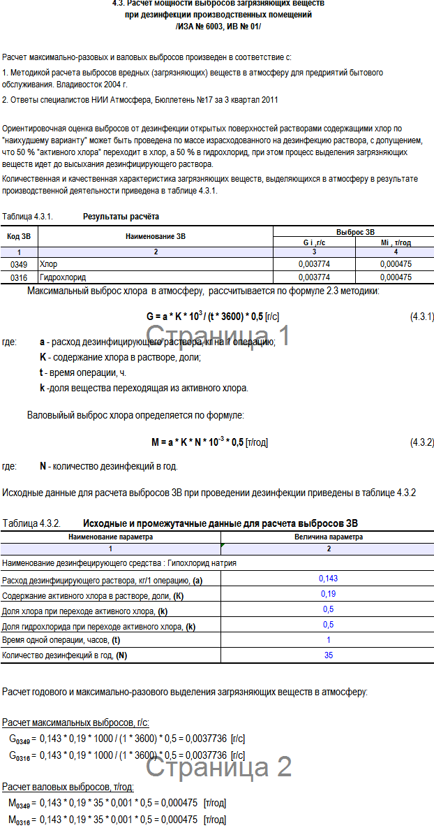 Вот пример - Расчет выбросов в атмосферу при использовании хлорной извести.
