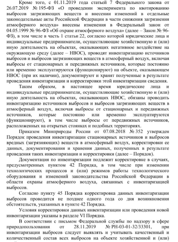 и правда какая разница какие источники - мы же госорган, нам пофиг )))Вадим Зыков писал(а): 23 окт 2019, 14:31 в части необходимости проведения инвентаризации с учетом выбросов от передвижных источников.