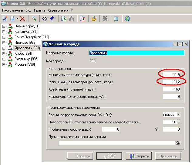 Виктория, чтобы получились разные результаты расчетов рассеивания нужно поставить минимальную температуру зимой и максимальную летом, по СНиПу. Запускаете программу, кликаете на свой город и задаете температуры. См. файл во вложении. Для зимы и лета значения разные.