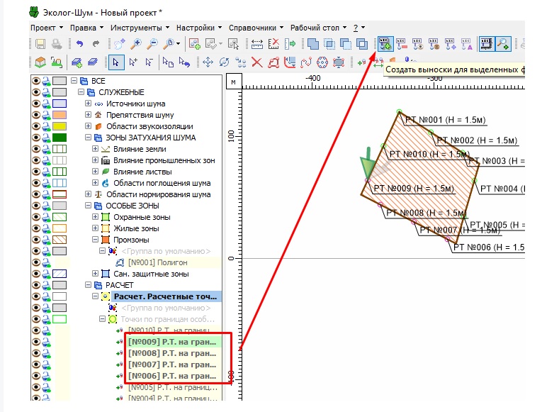 Также попробуйте выделить ваши расчетные точки и воспользоваться командой "добавить выноски для выделенных фигур". Формула при этом обязательно должна быть прописана в настройке слоя.