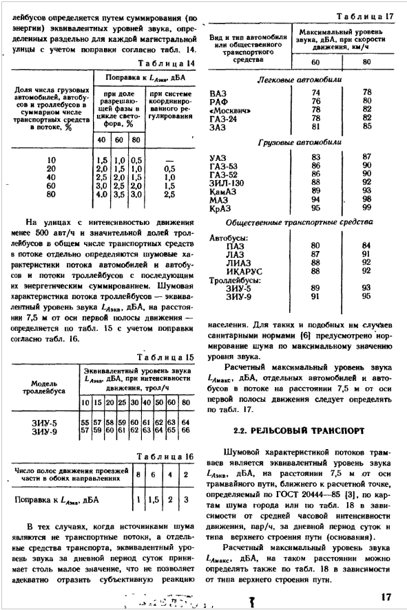 Максимальный уровень звука, при движении автотранспорта определяется по «Справочнику проектировщика. Защита от шума в градостроительстве». Под ред. Г. Л. Осипова, М., 1993.