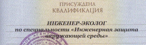 ГЭТИ, у меня в дипломе написано инженер по специальности инженерная защита окружающей среды: