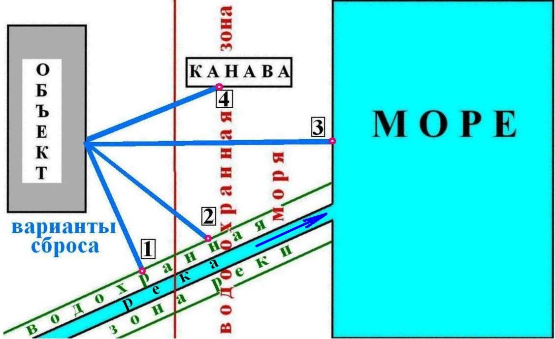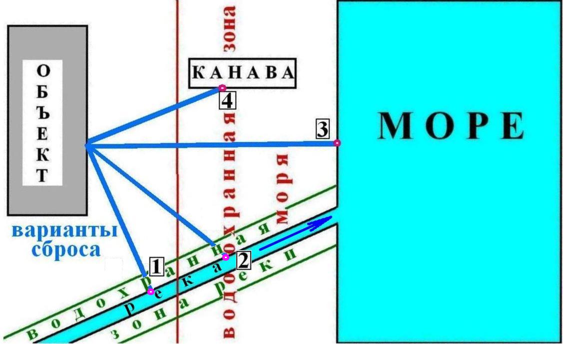 DDim, т.е. из вариантов расположения на картинке точек сброса, "правильными" (соответствующие озвученным Вами требованиям пп.7 п.15 ст.65 ВК РФ, т.е. запрет сброса сточных вод в водоохранной зоне ВО) будут только 1 и 3?DDim писал(а): 10 июл 2019, 13:33 ro_, то вы нарушаете водный кодекс, так как сброс в ВЗ запрещён, то есть канава должна быть вне водоохранной зоны - являтся водным объектом.