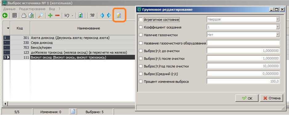 - корректное формирование отчётов в случае использования служебных символов в наименовании веществ или источников;