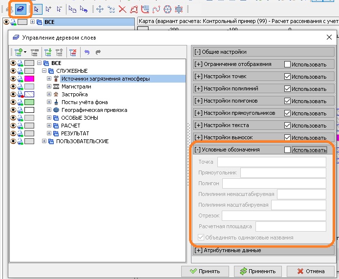 Здравствуйте, уважаемые разработчики. Подскажите, пожалуйста, как отображать при печати карты условные обозначения, которые мне необходимы? При нажатии на печать, отображаются условные обозначения только пром.зоны и сзз, а мне еще нужны опорная точка, иза и пром.площадка стороннего предприятия. Заранее благодарю за ответ!