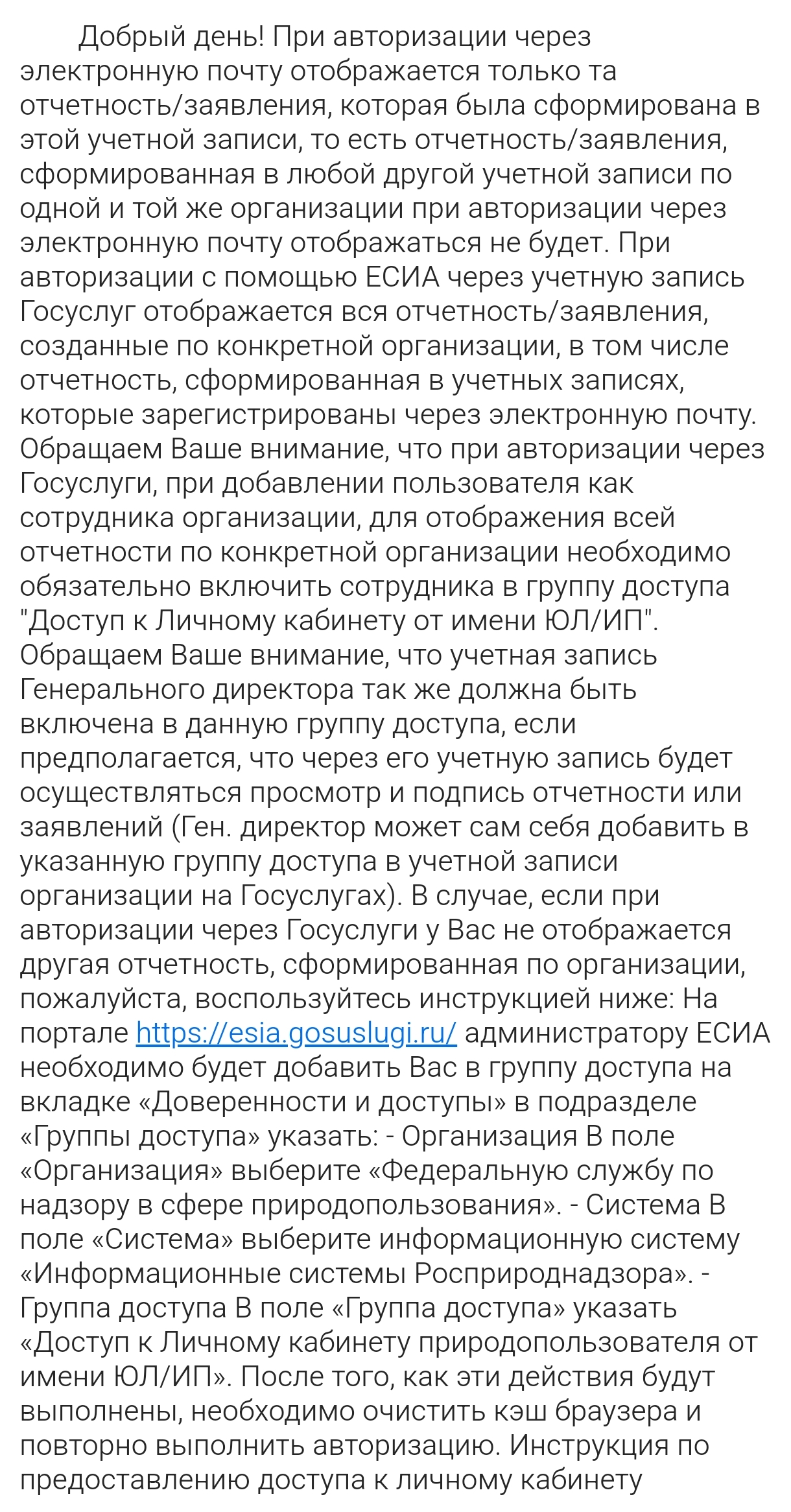 Re: Личный кабинет природопользователя по подготовке и сдаче отчетности в Росприроднадзор