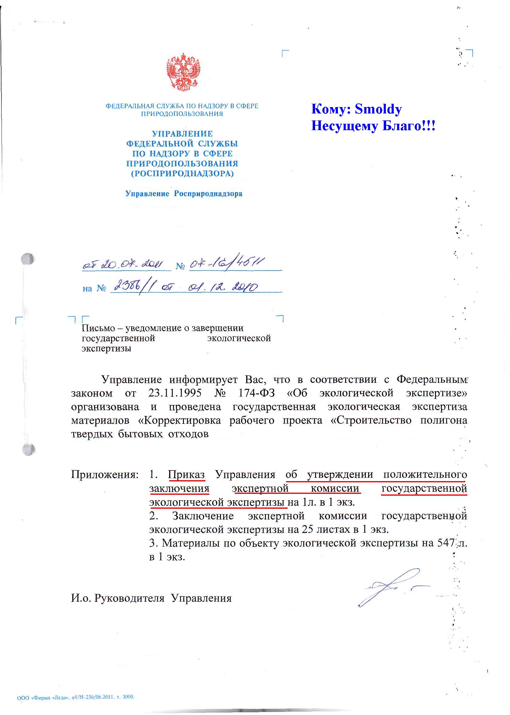 Сегодня получил на руки положительное заключение территориального органа государственной экологической экспертизы, где сказано что в "Суперсанпине" 2.2.1/2.1.1.1200-03 размер ориентировочной СЗЗ для полигона ТБО не установлен. и согласно СП 2.1.7.1038-01 размер СЗЗ от жилой застройки составляет 500м. (ссылаются на полученное письмо "АКХ" см. выше)