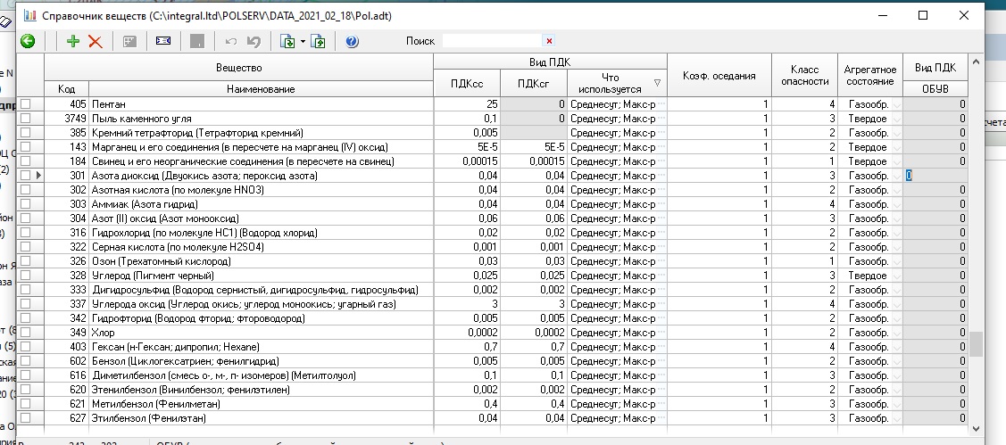 И. Что стало со справочником веществ в ПДВ? Был мой большой справочник с поправленными новыми ПДК, настроенными агрегатными состояниями, а теперь справочник из 186 веществ. Это как?