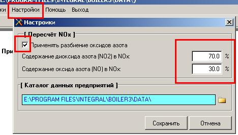 Программа не позволяет (вкладка-настройка) корректировать процентное соотношение диоксидов азота (окно не активно).расчет ведется по теоретическому методу