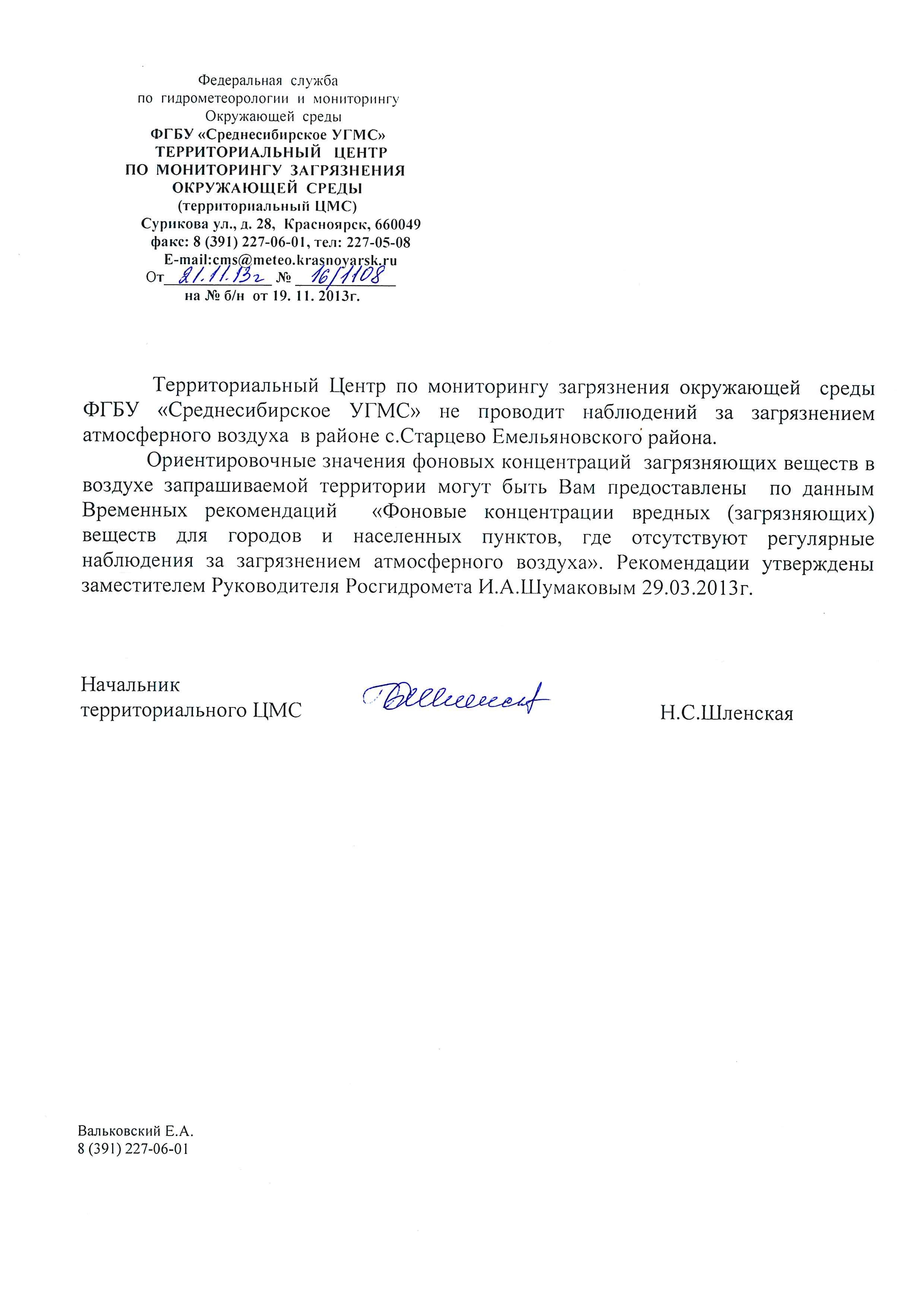 Запросила в «Иркутском ЦМС» справку о фоновых концентрациях загрязняющих веществ в атмосферном воздухе (NOx, SO2,CO, ВВ), прислали ответ, что за фоновые концентрации следует принять нулевые значения.