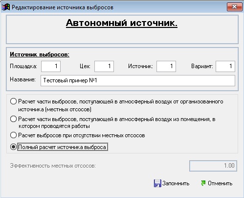 Полный расчет источника выбросов.