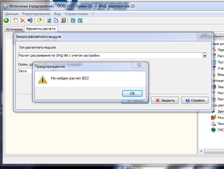 Добрый день. Обратите внимание включены ли ваши источники в группу (рис. Группа НДВ) и после перехода в УПРЗА должна стоять галочка...