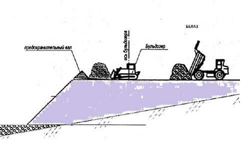 Есть отвал, формируемый на склоне. Как на картинке - условный треугольник. Максимальная высота 20 м.
