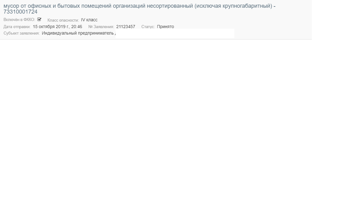 Добрый вечер у Вас именно в строке статус написано ? обычно пишут ПринятоArcodon Imbricatus писал(а): 16 дек 2019, 12:46 Добрый день! В личном кабинете природопользователя наблюдаю следующий статус заявления на паспорта отходов "ЗАКРЫТО" - это есть плохо или хорошо? Как понимать подскажите пожалуйста .