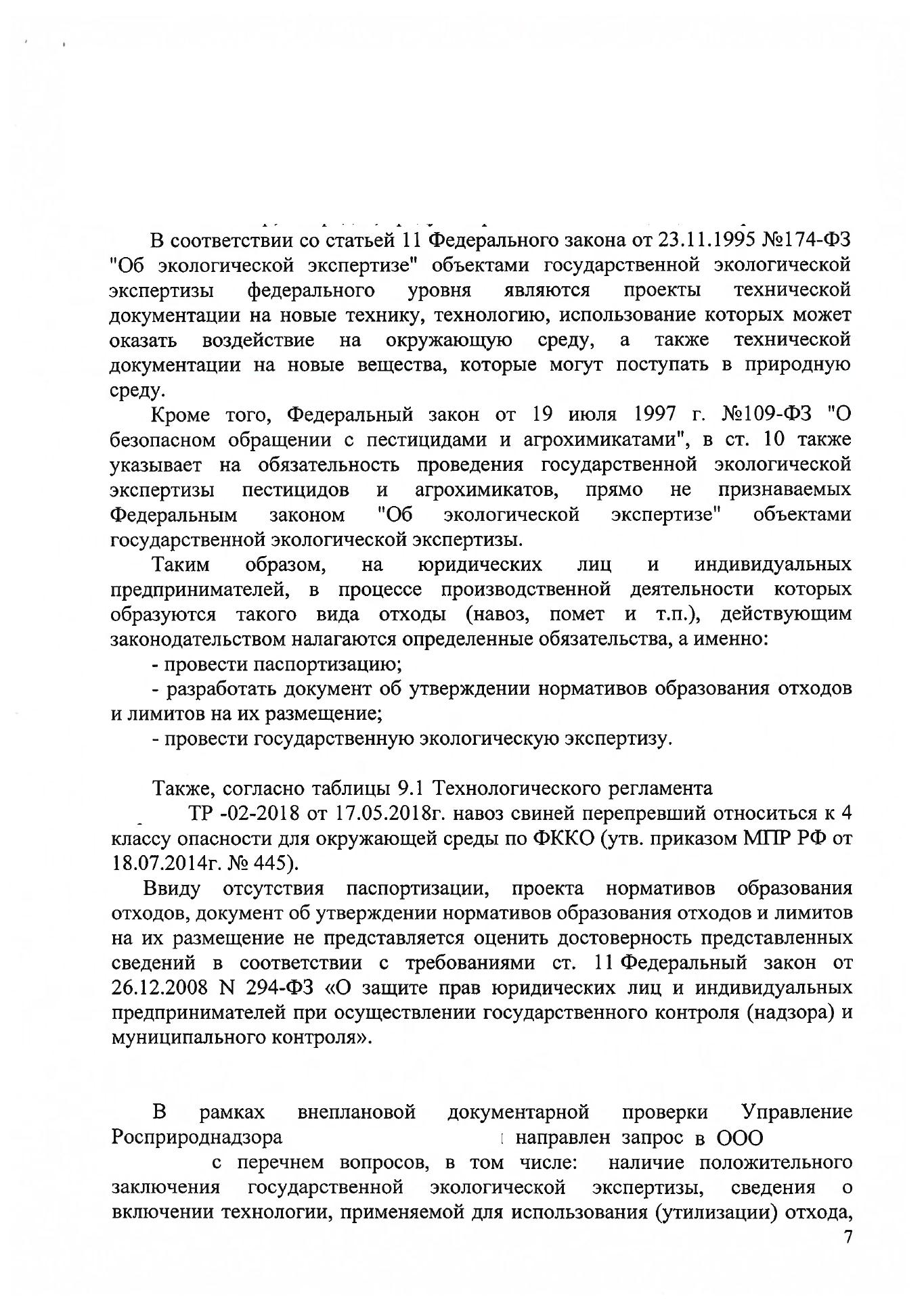 Доброго времени суток, уважаемые коллеги! Я смотрю ветка существует с 2010 года, но никакого решения так и нет. Приведу свою историю, может кто-нибудь что-то подскажет. Предприятие занимается свиноводством, навоз от свиней идет на сепарацию, потом жидкая фракция в лагуны, а твердая на площадку буртования. Навоз перепревает в удобрение менее чем за 11 месяцев, никаких дополнительных действий мы с ним не делаем. получили ТУ на удобрение, провели все анализы, тех-регламенты и т.д. все есть. Подали проект ПНООЛР на согласование, нам отказали и потребовали лицензию. Подготовили материалы лицензии, прошли всех надзорников, а вот в РПН нам завернули. Сказали, что по 174-ФЗ и по 109-ФЗ нам требуется гос эко экспертиза на удобрение.