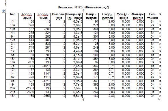 Может пока чем нибудь облегчит работу - при просмотре результатов расчетных точек по веществу выбираем "Вид"-"Сортировка по номеру точки" и далее "Печать" :)