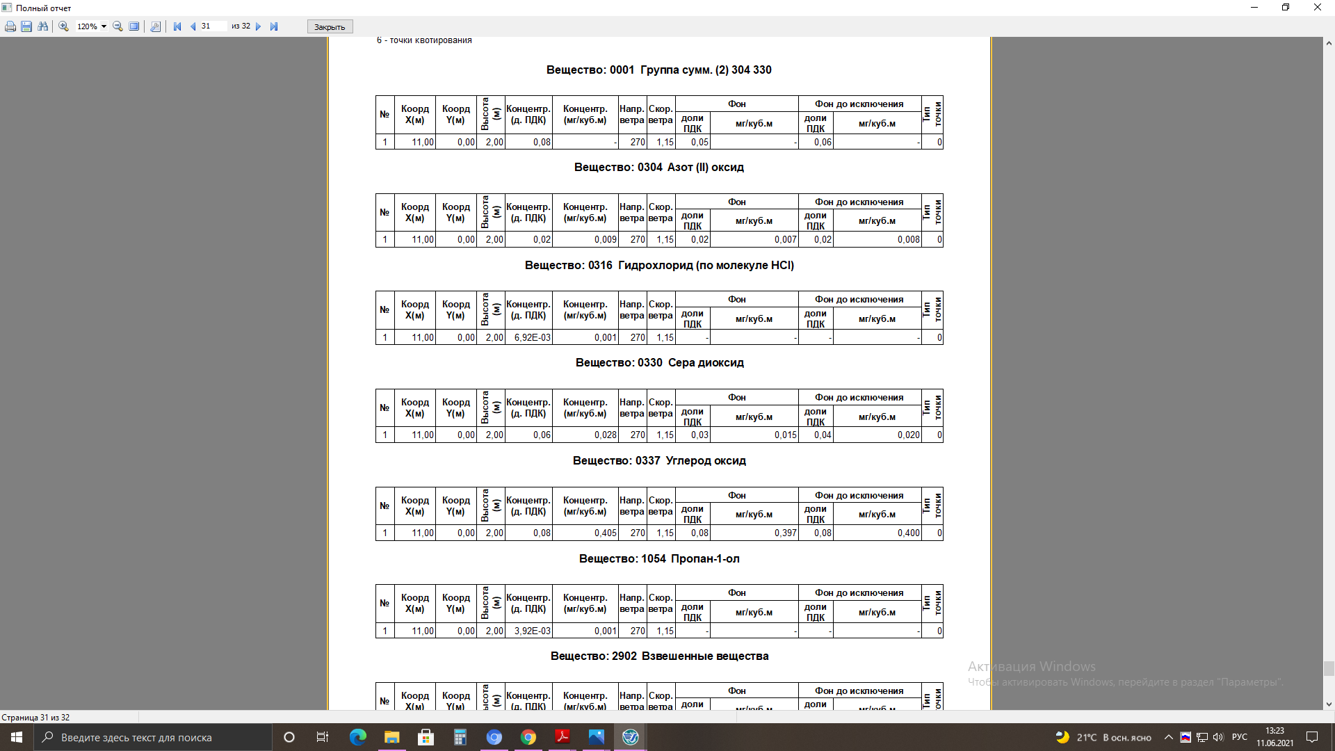 В способе учета фона для источников выбросов указан "+", т.е. фон прибавляется к вкладу источников. Такой способ применяется для перспективных источников, вклад которых в фон еще отсутствует. Если у вас существующие источники, то в способе учета фона нужно выбирать "%" , т.е. режим вычитания вклада предприятия из фона.