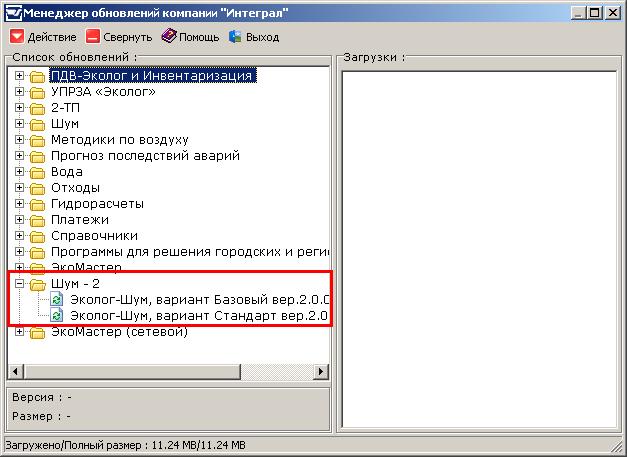 Если в вашем распоряжении были дополнительные модули к программе "Эколог-Шум" ("Расчет внешнего шума от систем вентиляции", "Расчет шума от транспортных потоком", "Каталог шумовых характеристик", "Расчет проникающего шума"), то их так же нужно загрузить и обновить.