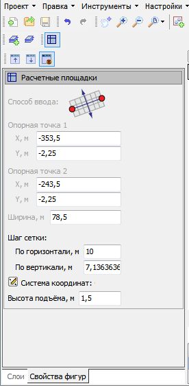 Внизу надо переключить со слоев на свойства фигур при выбранной расчетной площадке