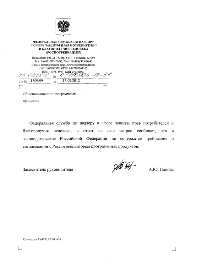 Письмо Роспотребнадзора от 25.09.2012 №01/10905/12-31