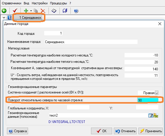 За поворот стрелки указывающей на север отвечает соответствующий параметр в карточке данных о городе.