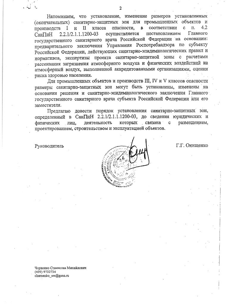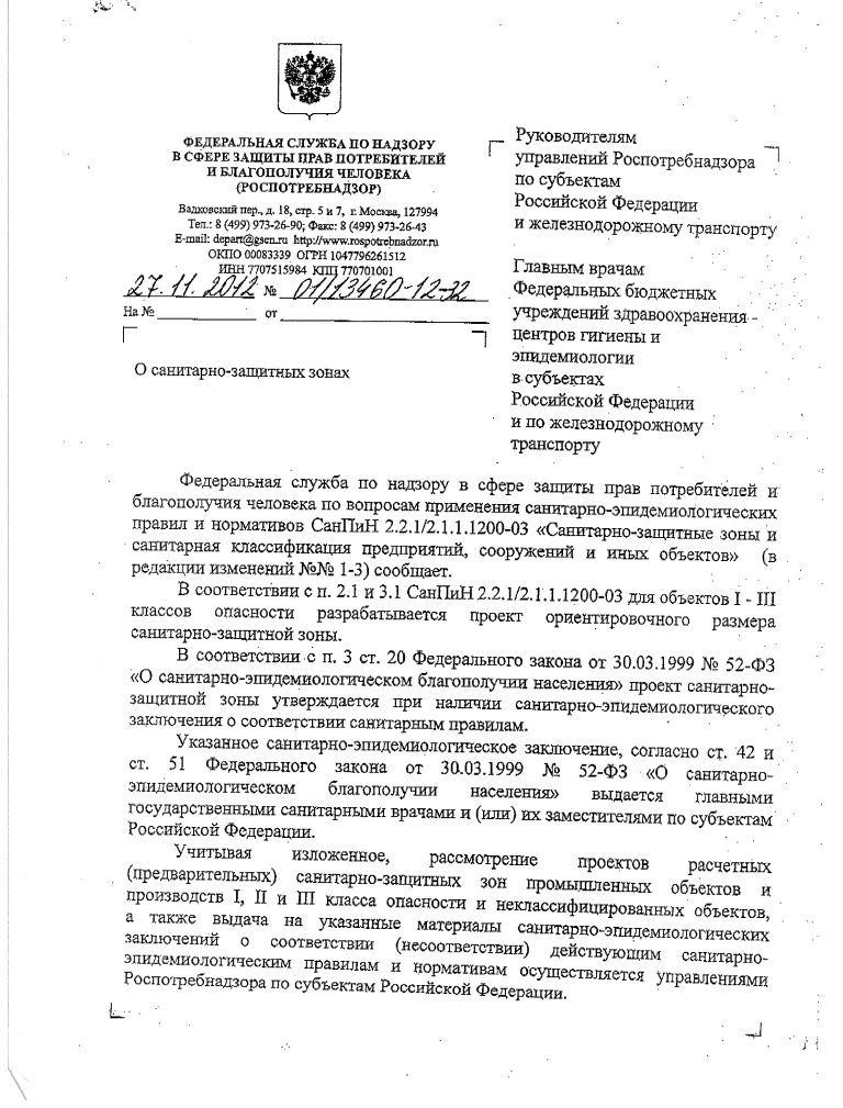 Re: Новое письмо Роспотребнадзора по СЗЗ